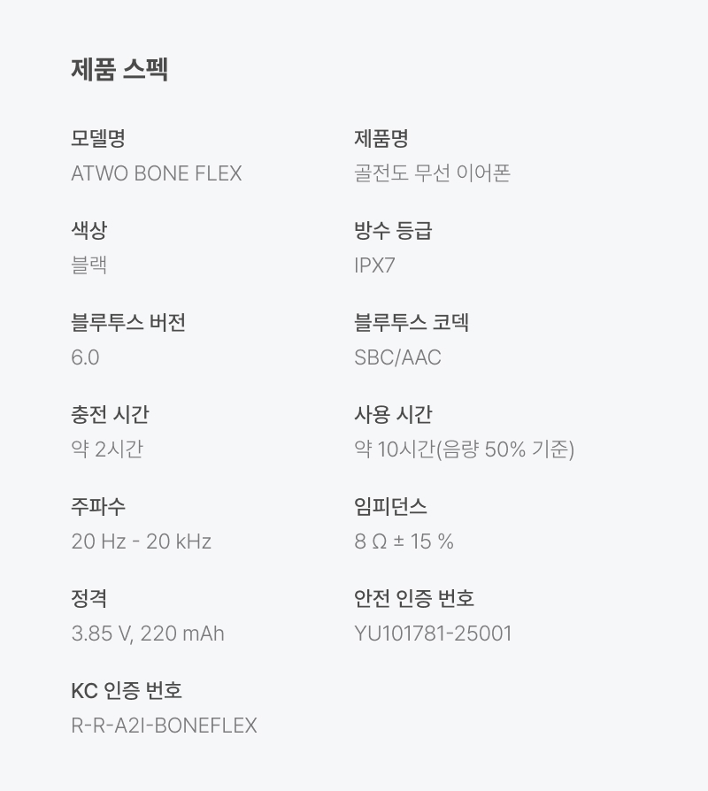 에이투 본플렉스 골전도이어폰 스포츠 플렉시블 블루투스 IPX7 방수 BONE FLEX