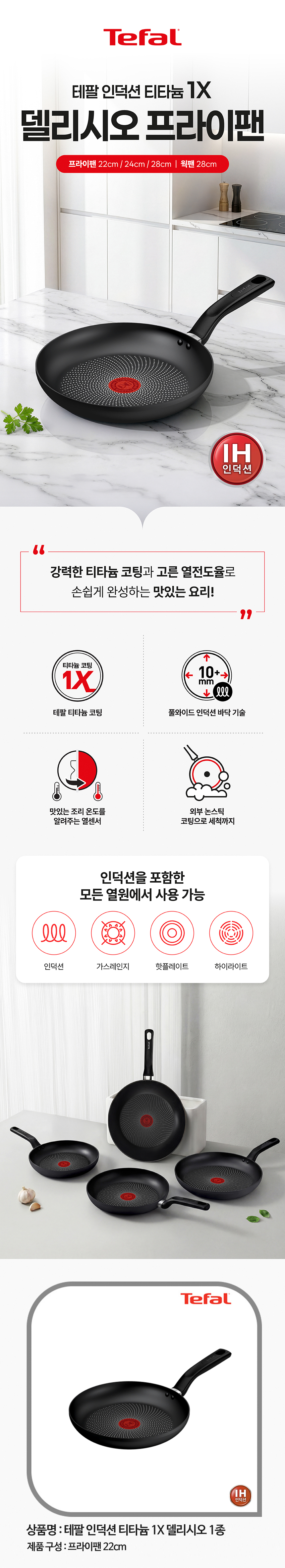 테팔 인덕션 티타늄 델리시오 프라이팬 22cm