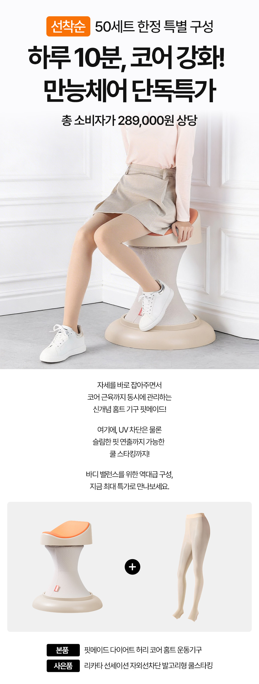 핏메이드 다이어트 허리 코어 운동 의자 댄싱체어 자세교정 홈트 운동기구+UV차단 스타킹 증정