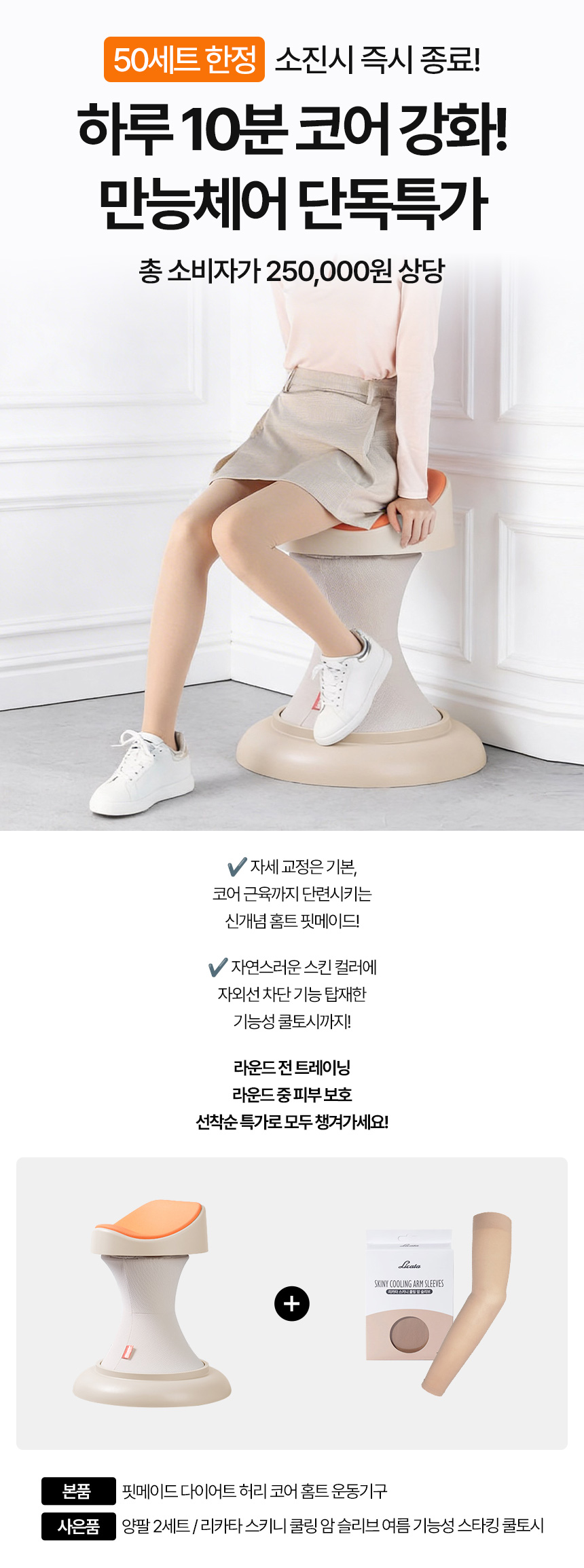 핏메이드 다이어트 허리 코어 운동 의자 댄싱체어 자세교정 홈트 운동기구+쿨링 암슬리브 토시 2세트