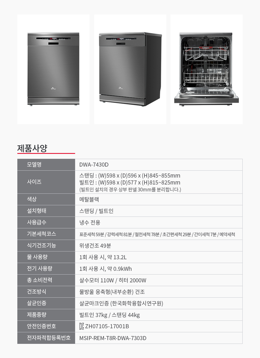 [SK매직/DWA-7430D] 식기세척기 무상설치 가정용 프리스탠딩