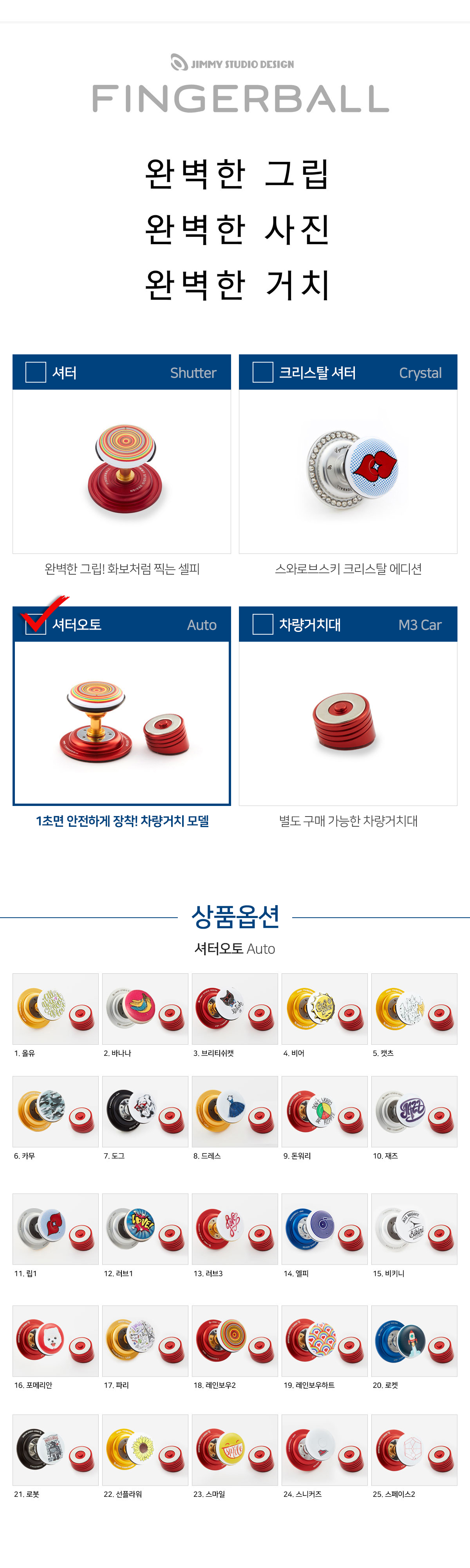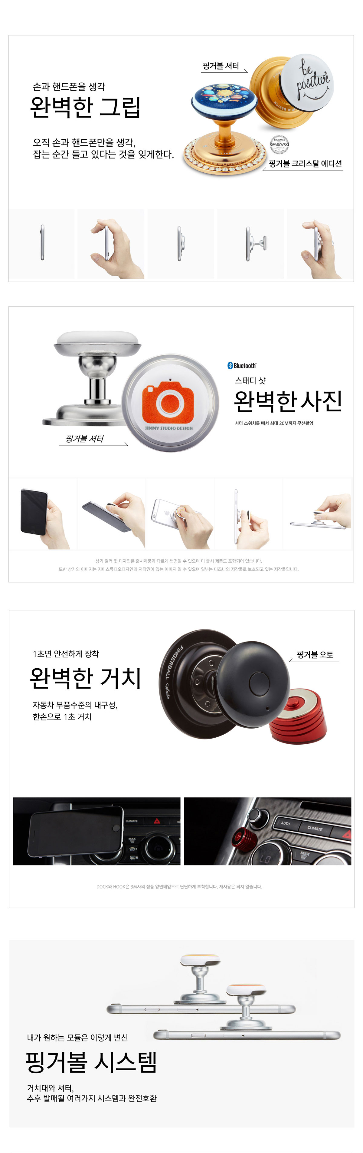 지미스튜디오디자인 핑거볼 셔터 오토 블루투스 리모컨 핸드폰거치대