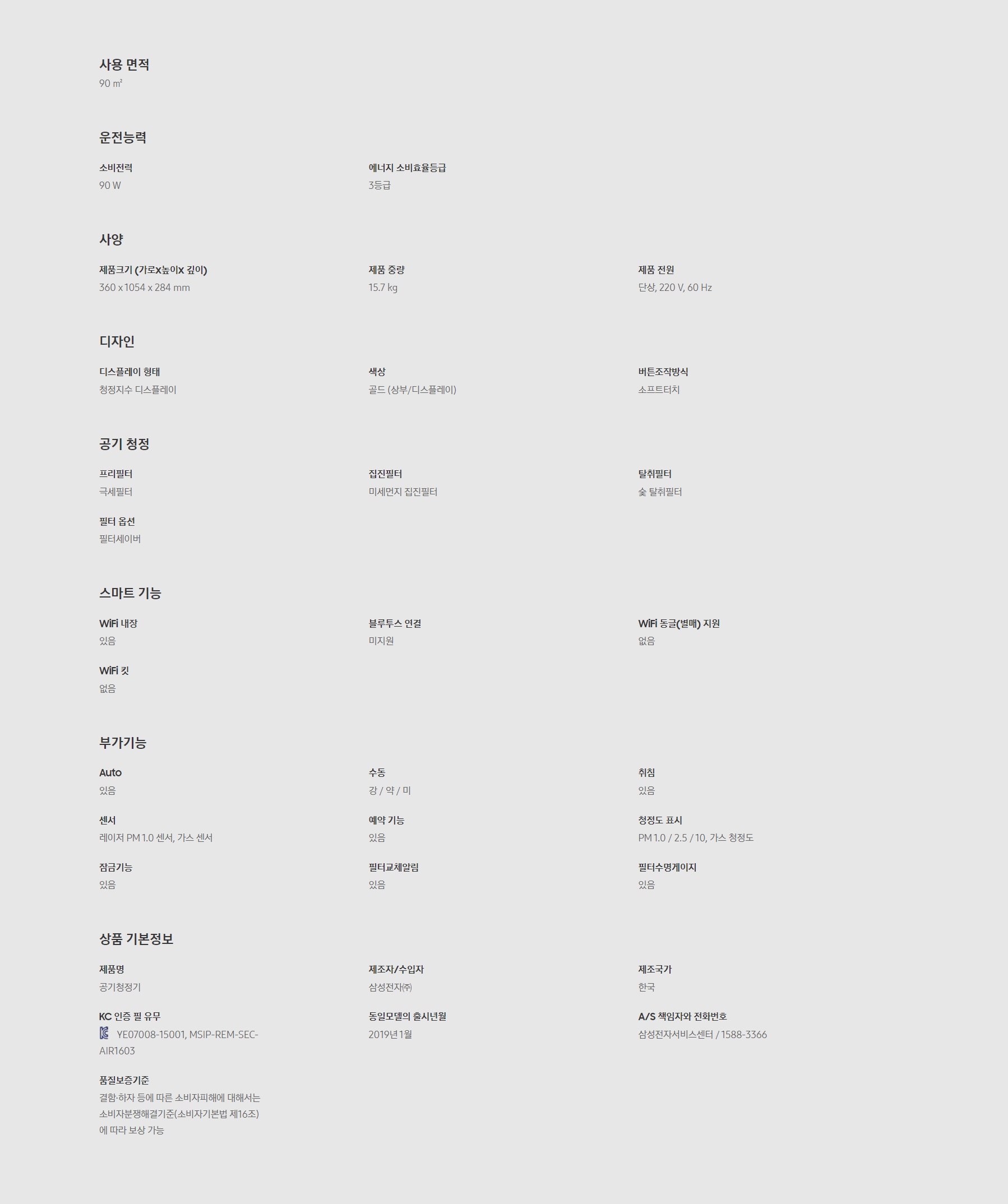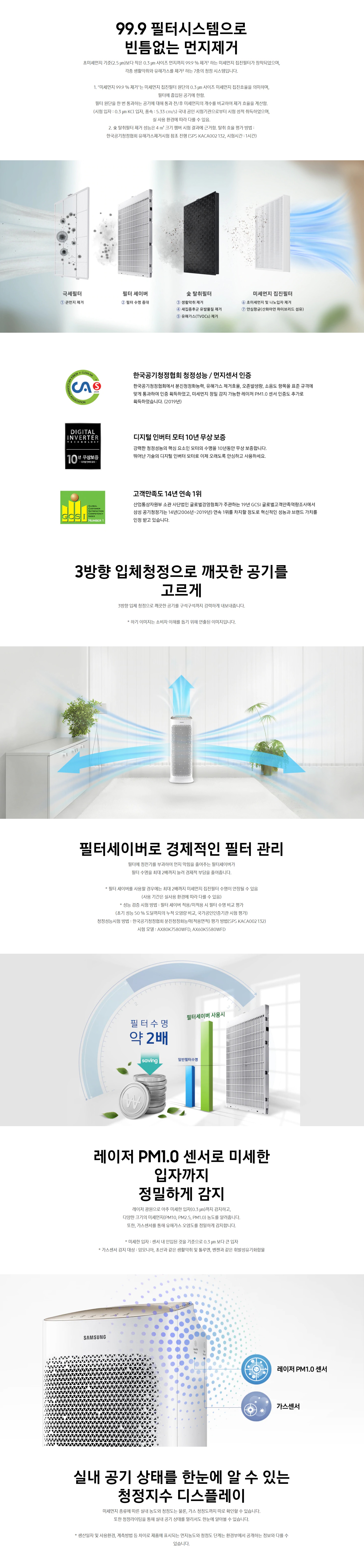 [삼성전자/AX90R7580WFD] 필터식 공기청정기 / 90㎡(27평형)
