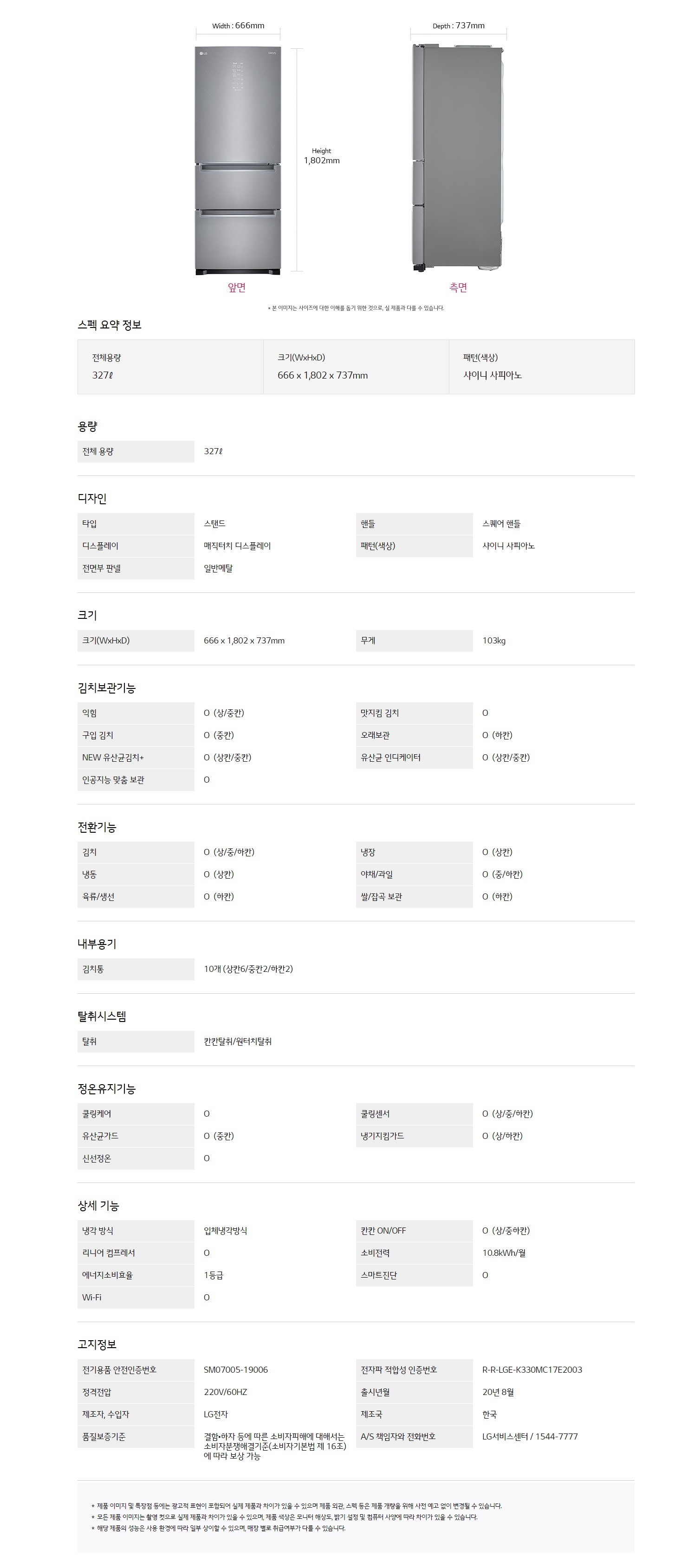 온라인 단독 [LG전자/K330SN19E] (온라인단독/5대한정)21년형/327L/스탠드형/전국무료배송/폐가전수거/렌탈 상품번호 S3308556 119,900원 삼성카드 100,000원 하나카드 1 / 1 일반구매 렌탈 판매가 2,399,000원 최대혜택가 7% 2,231,120원 혜택 모두보기> 적립 최대 e.POINT 적립 47,980P 자세히보기 배송비 무료배송 카드혜택 카드사별 무이자 혜택 > 팝업 닫기 재입고 알림을 신청 하시겠어요? 취소 재입고 알림 받기 팝업 닫기 재입고 알림이 신청 되었습니다. * 30일 후 자동 해제 * 마이랜드 재입고 알림 내역에서 확인 가능 확인 팝업 닫기 재입고 알림을 해제 하시겠어요? * 미입고시 2025-06-20 자동 해제 취소 지금 해제하기 팝업 닫기 재입고 알림이 해제 되었습니다. 확인 쿠폰받기 팝업 닫기 다운로드 받은 쿠폰은 마이랜드>쿠폰에서 확인가능합니다. 최소구매금액과 할인액을 확인하세요. 일부 쿠폰은 조기소진 될 수 있습니다. 쿠폰별 발급수량은 ID당 1개입니다. APP에서 구매하면 1% 추가 적립 본품 : 수량 감소 수량 증가 2,399,000원 총 상품금액 2,399,000원 생활파워케어 포함가 생활파손케어 포함가 SOLD OUT 재입고 알림 신청 렌탈기간 렌탈료 월 원 제휴카드 렌탈료 도움말 제휴카드 렌탈료 LOCA X BS RENTAL 롯데카드 전월 30만원 이상 사용 ▶ 월 13,000원 할인 전월 70만원 이상 사용 ▶ 월 17,000원 할인 전월 150만원 이상 사용 ▶ 월 25,000원 할인 NEW BS ON 우리카드 전월 30만원 이상 사용 ▶ 월 13,000원 할인 전월 70만원 이상 사용 ▶ 월 15,000원 할인 전월 120만원 이상 사용 ▶ 월 23,000원 할인 BS ON 플러스하나카드 전월 30만원 이상 사용 ▶ 월 13,000원 할인 전월 120만원 이상 사용 ▶ 월 23,000원 할인 ※ 결제 시 제휴카드 신규 발급도 가능하며, 발급이 완료되면 월렌탈료 할인이 가능합니다. 월 원 ※ 총 렌탈료에는 렌탈수수료가 포함되어 일반상품 가격과 차이가 있습니다. ※ 렌탈 시 전자랜드 쇼핑몰의 할인혜택(쿠폰,상품권,e.POINT 등) 및 카드혜택은 적용되지 않습니다. SOLD OUT 팝업 닫기 렌탈 서비스 안내 왜 렌탈을 해야 하는거죠 ? 일반 구매 경우 결제 시 최대 6개월, 제휴카드 이용 시 최대 36개월 무이자 할부가 가능하지만 렌탈 구매 경우 일반카드/제휴카드 구분 없이 24,36,48,60개월 렌탈 가능. 추가로 일반 구매 시에 구매 금액 만큼 채무가 발생하게 되지만 렌탈은 당일 현장에서 결제되는 금액이 없이 약정기간 동안 월 렌탈료만 청구가 되므로 채무 발생이 없어 고객 개인 신용에도 영향 없이 구매가 가능합니다. 렌탈 계약 이후 해지가 가능한가요? 제품 설치(인도) 전에는 계약 해지가 가능합니다. (고객 접수하신 전자랜드 대리점에 문의) 설치 완료 후에는 해지 가능하나 위약금이 발생합니다. (위약금 :t잔여 렌탈료 100%) ※ 설치(인도) 완료 7일 이후 해지 문의는 렌탈사 고객센터(1588-6990)로 문의 주시면 됩니다. 렌탈 약정기간 종료 후 렌탈 제품의 소유권은 어떻게 되나요? 렌탈 약정기간 종료 시 렌탈료가 정상적으로 완납되었을 경우 렌탈 제품의 소유권은 계약자에게 이전됩니다. 완납정보는 렌탈사 BS ON 을 통해 알 수 있습니다. 법인명, 법인사업자 카드로 렌탈페이 진행이 가능한가요? 개인명의, 개인카드로만 렌탈 접수 가능합니다. 본인명의의 휴대폰으로만 렌탈 신청 가능한가요? 네. 신청자 본인명의의 휴대폰번호로 신청 가능하며, 본인명의의 카드로 신청 가능합니다.(스마트폰 으로만 신청 가능) 렌탈을 하게 되면 신용에 문제가 생기지 않나요? 렌탈사는 고객의 렌탈 가능 여부를 위해 조회만을 하기 때문에 고객의 신용에 영향을 주지 않습니다. 제휴카드 할인은 어떻게 받을 수 있나요? 이미 렌탈사 제휴카드(롯데카드,하나카드,우리카드)를 소지하신 경우, 렌탈 결제정보 입력 시 해당 카드 정보를 입력하시면 할인이 가능하며, 제휴카드가 없으신 경우 렌탈 결제정보 입력 시 제휴카드 신규 발급을 요청하시면 발급 완료 후 할인이 가능합니다. 렌탈료 자동납부 신청방법 렌탈사 고객센터(1588-6990)를 통해 제휴카드로 자동납부 신청 바랍니다.각 카드사에 렌탈료가 청구되는 시점부터 할인 혜택이 적용됩니다. 렌탈 제품 주문 후 취소 또는 교환/반품을 하면 어떻게 되나요? 취소 : 제품이 배송되기 전 취소 시 주말/공휴일을 제외하고,1~3일 내에 취소 완료 처리됩니다. 교환/반품 : 제품이 배송/설치된 경우 교환 및 반품은 불가합니다. 단, 제품에 하자가 있는 경우 확인 후 교환 및 반품이 가능합니다. 할인 · 혜택 모두보기 팝업 닫기 정상가 2,399,000원 e.POINT 최대적립 i 창닫기 최대 적립 포인트는 할인가 기준으로 계산되며, 최종결제금액과 결제 조건에 따라 적립금액이 변경됩니다. 주문서에서 최종 적립혜택을 다시 한번 확인해주세요. 47,980P 기본적립 23,990P 앱 구매시 추가적립 추천 23,990P 카드혜택 삼성카드 캐시백(일반결제) 119,900원 하나카드 즉시할인(일반결제) 100,000원 ※ 캐시백은 배송완료 기준 익익월 10일 이내 카드대금 결제통장으로 카드사에서 입금됩니다. 최대 혜택가 2,231,120원 삼성카드 캐시백 유의사항 삼성카드로 결제 시 5% 캐시백(최대 20만원 한도)최소 주문 금액 5만원 / 미충족시 캐시백 지급 불가*상품 상세페이지