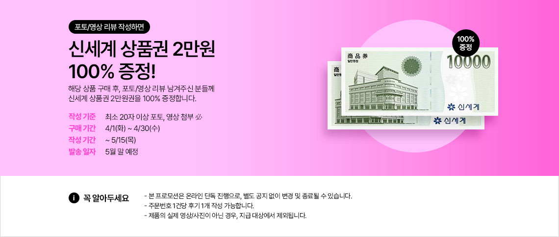 📍 적립혜택 : 포토/영상 리뷰 작성 시 1,000 e.POINT, 텍스트 리뷰 작성 시 300 e.POINT 로 변경됩니다.