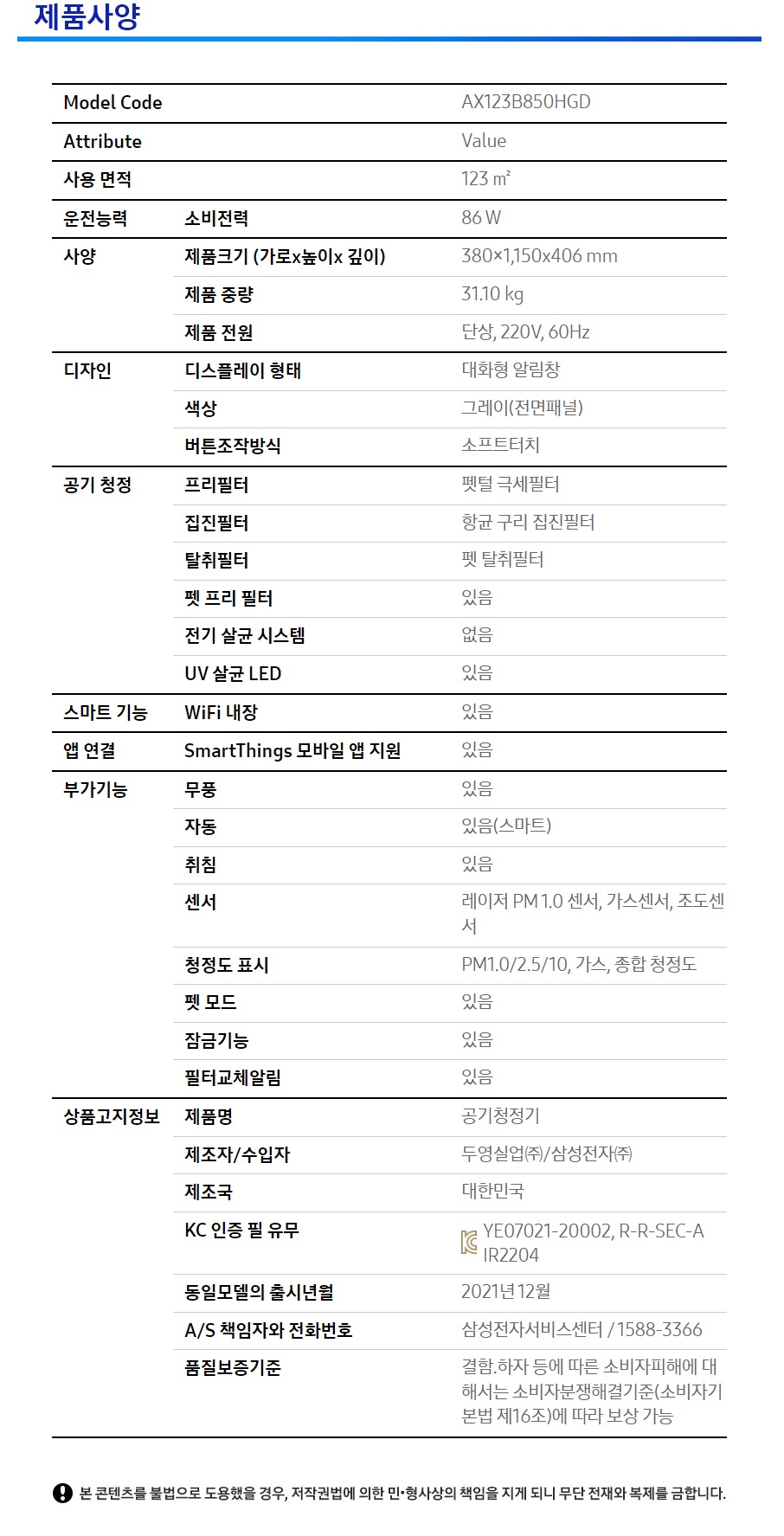 제품 이미지 및 특장점 등에는 광고적 표현이 포함되어 실제 제품과 차이가 있을 수 있으며 제품 외관, 에너지 효율 등급, 스펙 등은 제품 개량을 위해 사전 예고없이 변경 될 수 있습니다.