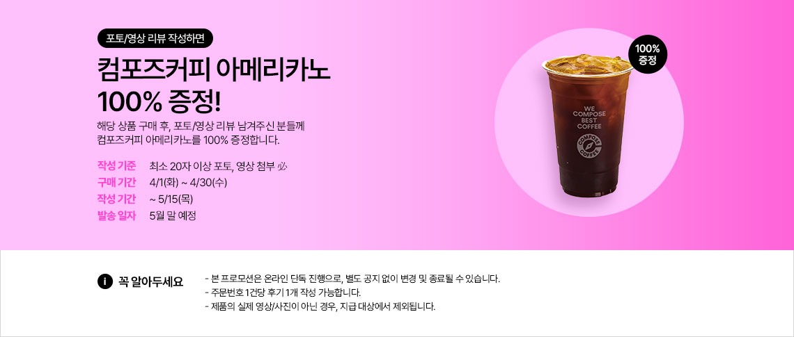 📍 적립혜택 : 포토/영상 리뷰 작성 시 1,000 e.POINT, 텍스트 리뷰 작성 시 300 e.POINT 로 변경됩니다.