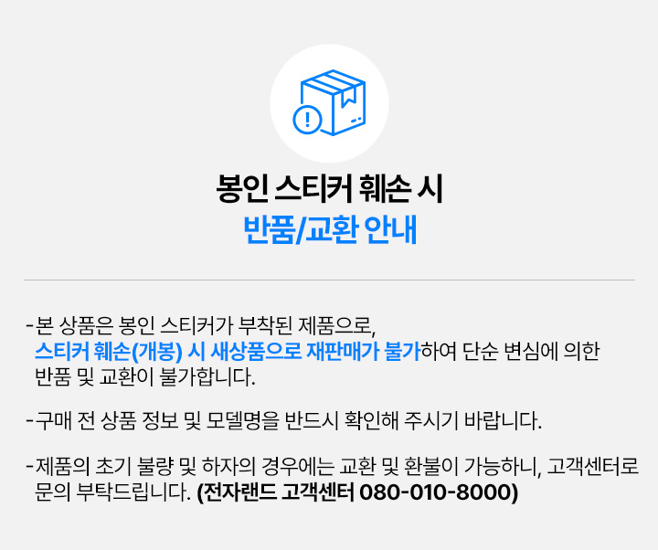 • ② 제품 포장(박스)을 개봉 / 훼손 또는 상품의 밀봉을 개봉하여 재판매가 어려운 경우
