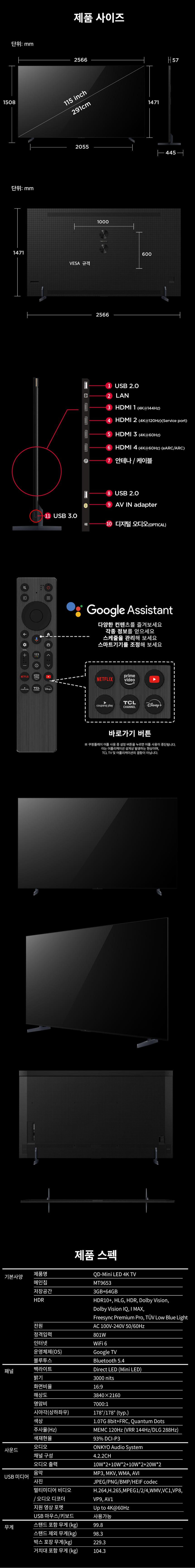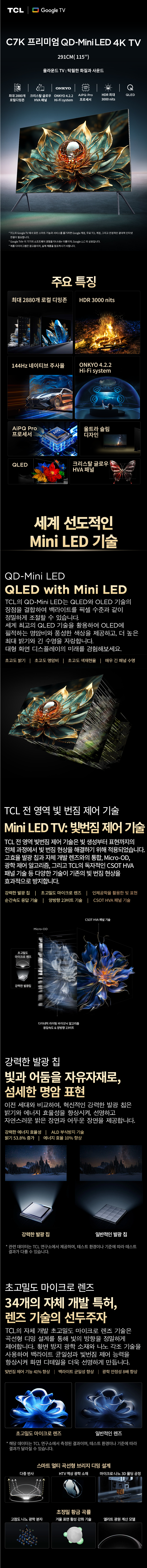 TCL 115C7K 4K QD-Mini LED 291cm(115인치) 안드로이드 TV