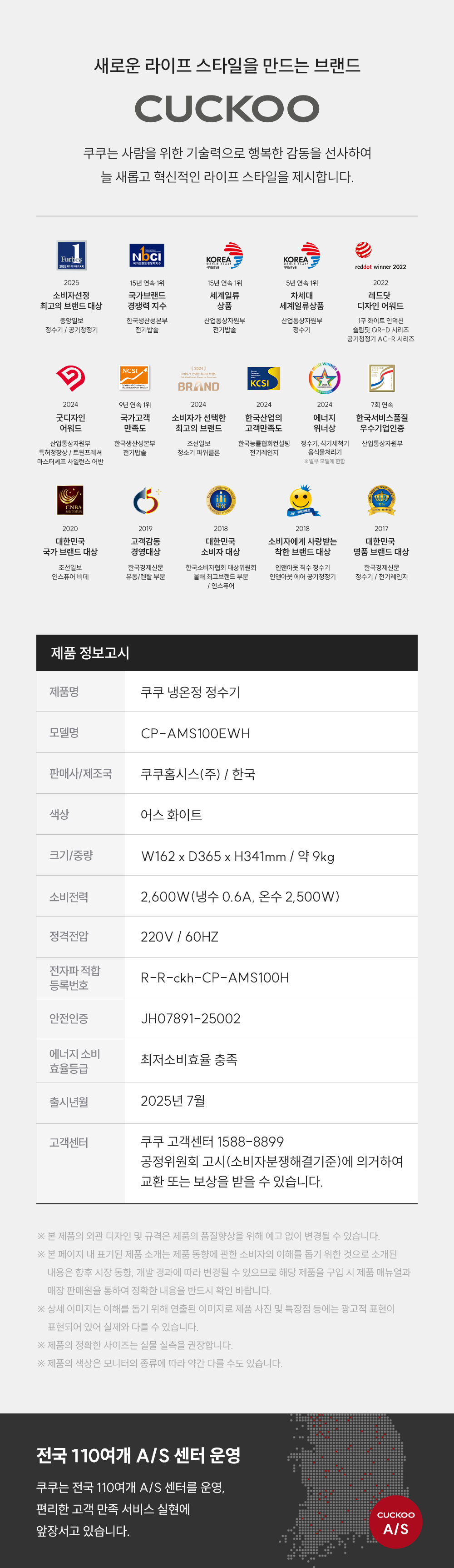 쿠쿠 인스퓨어 미니 100 초소형 정수기(셀프형) 화이트 CP-AMS100EWH(D)