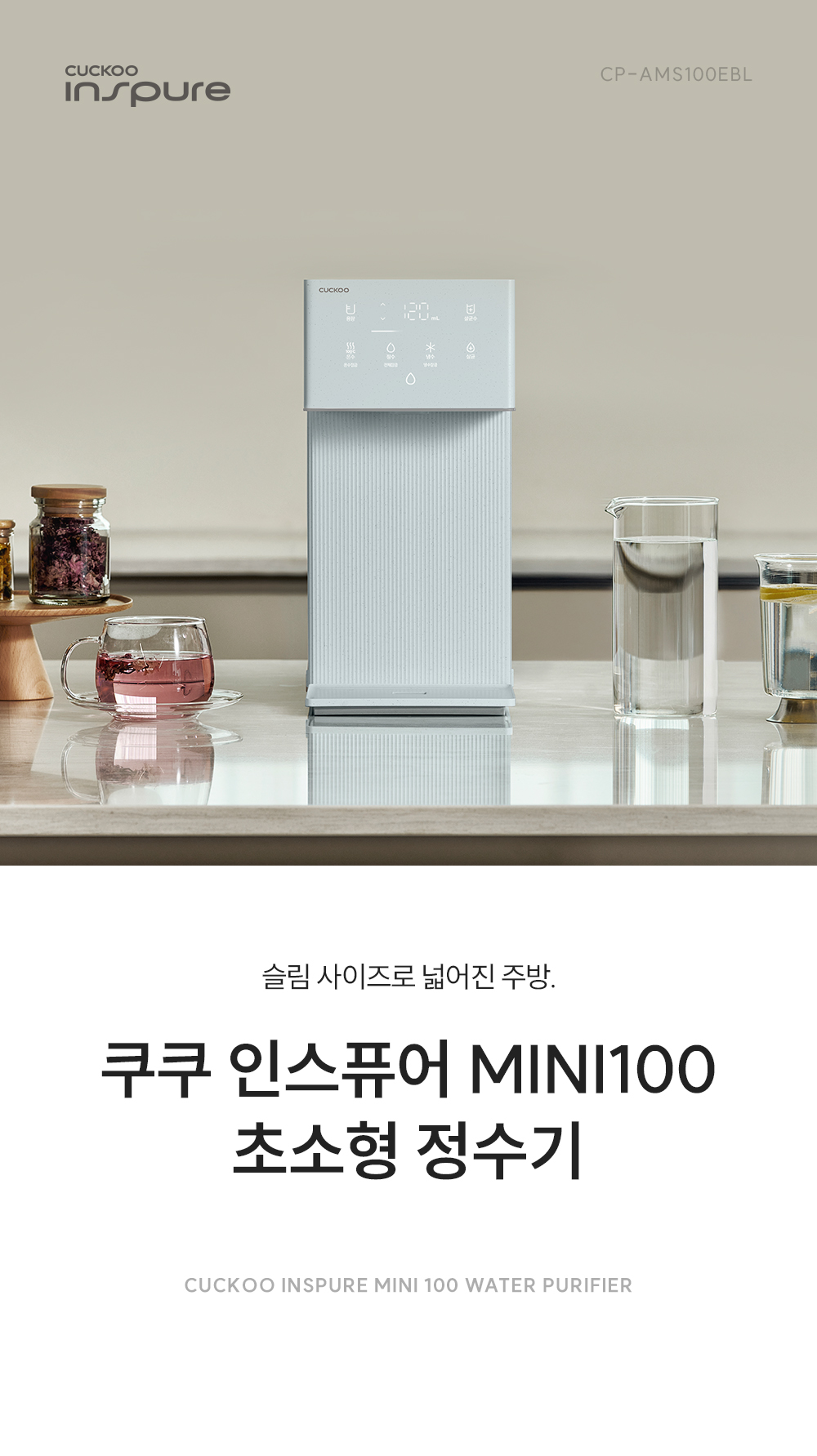 쿠쿠 인스퓨어 미니 100 초소형 정수기(셀프형) 블루 CP-AMS100EBL(D)