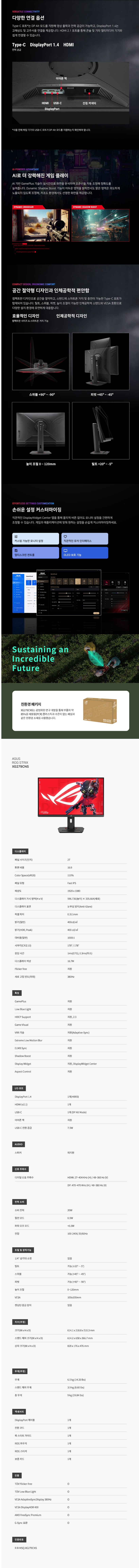 홈 컴퓨터/게임기/주변기기 모니터 모니터 온라인 단독 ASUS 프리미엄 게이밍 모니터 27인치(68~69cm) XG279CNS 상품번호 S6295068 21,900원 삼성카드 21,900원 신한카드 15,000원 하나카드 1 / 4 관련 기획전 판매가 439,000원 최대혜택가 7% 408,320원 혜택 모두보기> 적립 최대 e.POINT 적립 8,780P 자세히보기 배송비 무료배송 카드혜택 카드사별 무이자 혜택 > 팝업 닫기 재입고 알림을 신청 하시겠어요? 취소 재입고 알림 받기 팝업 닫기 재입고 알림이 신청 되었습니다. * 30일 후 자동 해제 * 마이랜드 재입고 알림 내역에서 확인 가능 확인 팝업 닫기 재입고 알림을 해제 하시겠어요? * 미입고시 2025-06-20 자동 해제 취소 지금 해제하기 팝업 닫기 재입고 알림이 해제 되었습니다. 확인 쿠폰받기 팝업 닫기 다운로드 받은 쿠폰은 마이랜드>쿠폰에서 확인가능합니다. 최소구매금액과 할인액을 확인하세요. 일부 쿠폰은 조기소진 될 수 있습니다. 쿠폰별 발급수량은 ID당 1개입니다. APP에서 구매하면 1% 추가 적립 본품 : 수량 감소 수량 증가 439,000원 총 상품금액 439,000원 생활파워케어 포함가 생활파손케어 포함가 구매하기 장바구니 할인 · 혜택 모두보기 팝업 닫기 정상가 439,000원 e.POINT 최대적립 i 창닫기 최대 적립 포인트는 할인가 기준으로 계산되며, 최종결제금액과 결제 조건에 따라 적립금액이 변경됩니다. 주문서에서 최종 적립혜택을 다시 한번 확인해주세요. 8,780P 기본적립 4,390P 앱 구매시 추가적립 추천 4,390P 카드혜택 삼성카드 캐시백(일반결제) 21,900원 신한카드 캐시백(일반결제) 21,900원 하나카드 즉시할인(일반결제) 15,000원 ※ 캐시백은 결제일 기준 익익월 10일 이내 고객님의 카드대금 결제통장으로 카드사에서 입금됩니다. 최대 혜택가 408,320원 삼성카드 캐시백 유의사항 ?삼성카드로 결제 시 5% 캐시백(최대 20만원 한도) * 상품 상세페이지에서 혜택대상으로 표기된 일부 상품에만 혜택적용 * 삼성카드 즉시할인 행사와 중복적용 가능 * 체크카드, 법인카드, 기업카드(사업자 포함), 기프트카드(충전포함), 하이브리드 카드, bc카드로 결제 시 적용 제외 * 스마일페이, Npay, 카카오페이, SSGPAY, 페이코, L.페이, 삼성페이, 토스, 차이페이, 무통장입금으로 결제 시 적용 제외 * 최종카드결제금액 기준으로 캐시백 혜택이 적용(쿠폰, 포인트, e.POINT, OK캐시백 등을 차감한 금액) * 캐시백은 결제일 기준 익익월 10일 내 지급(캐시백 지급전 카드승인 취소, 카드사 탈회 시 지급되지 않음) * 기업회원, 비회원 주문건은 캐시백 대상에서 제외 * 캐시백 행사는 당사 사정에 의하여 예고 없이 조기 종료될 수 있습니다.? 신한카드 캐시백 유의사항 신한카드로 결제 시 5% 캐시백(최대 20만원 한도) * 상품 상세페이지에서 혜택대상으로 표기된 일부 상품에만 혜택적용 * 신한카드 즉시할인 행사와 중복적용 가능 * 체크카드, 법인카드, 기업카드(사업자 포함), 기프트카드(충전포함), 하이브리드 카드, bc카드로 결제 시 적용 제외 * 스마일페이, Npay, 카카오페이, SSGPAY, 페이코, L.페이, 삼성페이, 토스, 차이페이, 무통장입금으로 결제 시 적용 제외 * 최종카드결제금액 기준으로 캐시백 혜택이 적용(쿠폰, 포인트, e.POINT, OK캐시백 등을 차감한 금액) * 캐시백은 결제일 기준 익익월 10일 내 지급(캐시백 지급전 카드승인 취소, 카드사 탈회 시 지급되지 않음) * 기업회원, 비회원 주문건은 캐시백 대상에서 제외 * 캐시백 행사는 당사 사정에 의하여 예고 없이 조기 종료될 수 있습니다.? 하나카드 즉시할인 유의사항 하나앱카드로 10만원 이상 결제 시 금액대별 즉시할인* 10만원 이상 결제 시 5천원 / 30만원 이상 1.5만원 / 50만원 이상 2.5만원 / 70만원 이상 3.5만원 / 100만원 이상 5만원 / 150만원이상 7.5만원 / 200만원 이상 10만원/ 250만원 이상 12.5만원 즉시할인* 적용제외대상: 법인/선불/기프트/하나BC 등 일부카드 및 간편결제수단, 전자랜드페이 결제건 제외* 비회원/기업회원 결제건 제외* 최종 카드결제금액 기준으로 혜택이 적용* 예산 소진 시 별도 공지없이 종료될 수 있음* 즉시할인이 적용된 실 결제금액은 카드사 승인금액으로 확인가능 * 주문취소 또는 부분취소로 인해 할인 조건에 부합하지 않을 경우, 적용된 할인금액은 환불금액에서 차감 e.POINT 적립 구매확정 시 자동 적립됩니다. 최종결제금액 및 결제조건에 따라 e.POINT 적립액은 달라질 수 있습니다. 쿠폰, 포인트, e.POINT 사용액은 최종결제금액에서 제외됩니다. 최종 적립액은 주문서에서 다시 한번 확인해 주세요. 사용기간은 적립일 기준 3년 후 말일까지입니다. 소멸일 이후 주문취소 시 복원되지 않습니다. 온라인쇼핑몰에서만 사용 가능한 포인트로 1P부터 사용 가능합니다. 카드 무이자 할부 팝업 닫기 11월 무이자 혜택안내 BC카드 5만원 이상 2,3,4,5 개월 무이자 할부 국민카드 5만원 이상 2,3,4,5 개월 무이자 할부 롯데카드 5만원 이상 2,3,4,5 개월 무이자 할부 전자랜드 롯데카드 5만원 이상 2,3,4,5 개월 무이자 할부 삼성카드 5만원 이상 2,3 개월 무이자 할부 신한카드 5만원 이상 2,3 개월 무이자 할부 외환카드 5만원 이상 2,3,4,5 개월 무이자 할부 현대카드 5만원 이상 2,3 개월 무이자 할부 하나카드 5만원 