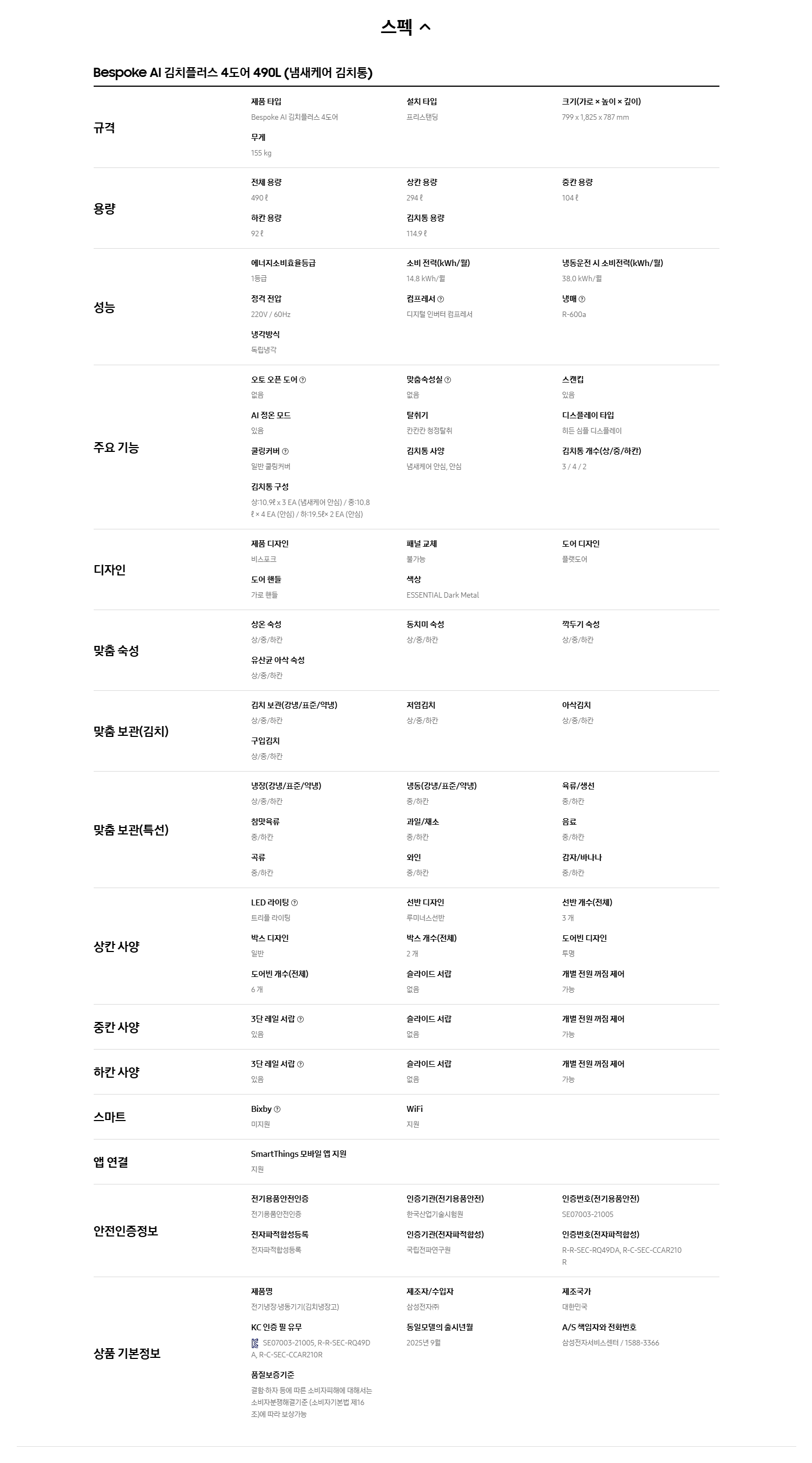 홈 냉장고/주방가전 냉장고/냉동고 김치냉장고 스탠드형 온라인 단독 [삼성전자/RK70F49F1DD] 비스포크AI 김치플러스 4도어 490L 1등급 에센셜다크메탈 설치포함 상품번호 S6295104 128,500원 삼성카드 128,500원 신한카드 125,000원 하나카드 120,000 쿠폰할인 1 / 3 할인가 2,570,000원 2,900,000원 최대혜택가 18% 2,390,100원 혜택 모두보기 적립 최대 e.POINT 적립 51,400P 자세히보기 배송비 무료배송 카드혜택 카드사별 무이자 혜택 > 팝업 닫기 재입고 알림을 신청 하시겠어요? 취소 재입고 알림 받기 팝업 닫기 재입고 알림이 신청 되었습니다. * 30일 후 자동 해제 * 마이랜드 재입고 알림 내역에서 확인 가능 확인 팝업 닫기 재입고 알림을 해제 하시겠어요? * 미입고시 2025-06-20 자동 해제 취소 지금 해제하기 팝업 닫기 재입고 알림이 해제 되었습니다. 확인 쿠폰받기 팝업 닫기 다운로드 받은 쿠폰은 마이랜드>쿠폰에서 확인가능합니다. 최소구매금액과 할인액을 확인하세요. 일부 쿠폰은 조기소진 될 수 있습니다. 쿠폰별 발급수량은 ID당 1개입니다. APP에서 구매하면 1% 추가 적립 본품 : 수량 감소 수량 증가 2,570,000원 총 상품금액 2,570,000원 생활파워케어 포함가 생활파손케어 포함가 구매하기 장바구니 할인 · 혜택 모두보기 팝업 닫기 정상가 2,900,000원 즉시할인 210,000원 쿠폰할인 냉장고 스페셜 쿠폰 12만원 120,000원 할인가 2,570,000원 e.POINT 최대적립 i 창닫기 최대 적립 포인트는 할인가 기준으로 계산되며, 최종결제금액과 결제 조건에 따라 적립금액이 변경됩니다. 주문서에서 최종 적립혜택을 다시 한번 확인해주세요. 51,400P 기본적립 25,700P 앱 구매시 추가적립 추천 25,700P 카드혜택 삼성카드 캐시백(일반결제) 128,500원 신한카드 캐시백(일반결제) 128,500원 하나카드 즉시할인(일반결제) 125,000원 ※ 캐시백은 결제일 기준 익익월 10일 이내 고객님의 카드대금 결제통장으로 카드사에서 입금됩니다. 최대 혜택가 2,390,100원 삼성카드 캐시백 유의사항 삼성카드로 결제 시 5% 캐시백(최대 20만원 한도) 최소 주문 금액 5만원 / 미충족시 캐시백 지급 불가 ? * 상품 상세페이지에서 혜택대상으로 표기된 일부 상품에만 혜택적용 * 삼성카드 즉시할인 행사와 중복적용 가능 * 체크카드, 법인카드, 기업카드(사업자 포함), 기프트카드(충전포함), 하이브리드 카드, bc카드로 결제 시 적용 제외 * 스마일페이, Npay, 카카오페이, SSGPAY, 페이코, L.페이, 삼성페이, 토스, 차이페이, 무통장입금으로 결제 시 적용 제외 * 최종카드결제금액 기준으로 캐시백 혜택이 적용(쿠폰, 포인트, e.POINT, OK캐시백 등을 차감한 금액) * 캐시백은 결제일 기준 익익월 10일 내 지급(캐시백 지급전 카드승인 취소, 카드사 탈회 시 지급되지 않음) * 기업회원, 비회원 주문건은 캐시백 대상에서 제외 * 캐시백 행사는 당사 사정에 의하여 예고 없이 조기 종료될 수 있습니다.? 신한카드 캐시백 유의사항 신한카드로 결제 시 5% 캐시백(최대 20만원 한도) 최소 주문 금액 5만원 / 미충족시 캐시백 지급 불가 * 상품 상세페이지에서 혜택대상으로 표기된 일부 상품에만 혜택적용 * 신한카드 즉시할인 행사와 중복적용 가능 * 체크카드, 법인카드, 기업카드(사업자 포함), 기프트카드(충전포함), 하이브리드 카드, bc카드로 결제 시 적용 제외 * 스마일페이, Npay, 카카오페이, SSGPAY, 페이코, L.페이, 삼성페이, 토스, 차이페이, 무통장입금으로 결제 시 적용 제외 * 최종카드결제금액 기준으로 캐시백 혜택이 적용(쿠폰, 포인트, e.POINT, OK캐시백 등을 차감한 금액) * 캐시백은 결제일 기준 익익월 10일 내 지급(캐시백 지급전 카드승인 취소, 카드사 탈회 시 지급되지 않음) * 기업회원, 비회원 주문건은 캐시백 대상에서 제외 * 캐시백 행사는 당사 사정에 의하여 예고 없이 조기 종료될 수 있습니다. * 하나카드 즉시할인 유의사항 하나앱카드로 10만원 이상 결제 시 금액대별 즉시할인* 10만원 이상 결제 시 5천원 / 30만원 이상 1.5만원 / 50만원 이상 2.5만원 / 70만원 이상 3.5만원 / 100만원 이상 5만원 / 150만원이상 7.5만원 / 200만원 이상 10만원/ 250만원 이상 12.5만원 즉시할인* 적용제외대상: 법인/선불/기프트/하나BC 등 일부카드 및 간편결제수단, 전자랜드페이 결제건 제외* 비회원/기업회원 결제건 제외* 최종 카드결제금액 기준으로 혜택이 적용* 예산 소진 시 별도 공지없이 종료될 수 있음* 즉시할인이 적용된 실 결제금액은 카드사 승인금액으로 확인가능 * 주문취소 또는 부분취소로 인해 할인 조건에 부합하지 않을 경우, 적용된 할인금액은 환불금액에서 차감 e.POINT 적립 구매확정 시 자동 적립됩니다. 최종결제금액 및 결제조건에 따라 e.POINT 적립액은 달라질 수 있습니다. 쿠폰, 포인트, e.POINT 사용액은 최종결제금액에서 제외됩니다. 최종 적립액은 주문서에서 다시 한번 확인해 주세요. 사용기간은 적립일 기준 3년 후 말일까지입니다. 소멸일 이후 주문취소 시 복원되지 않습니다. 온라인쇼핑몰에서만 사용 가능한 포인트로 1P부터 사용 가능합니다. 카드 무이자 할부 팝업 닫기 12월 무이자 혜택안내 BC카드 5만원 이상 2,3,4,5 개월 무이자 할부 국민카드 5만원 이상 2,3,4,5 개월 무이자 할부 롯데카드 5만원 이상 2,3,
