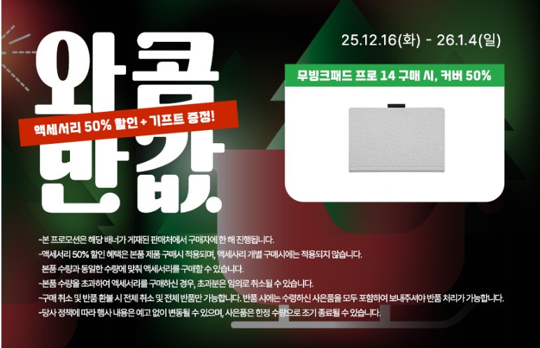 홈 스마트폰/태블릿/디지털 테블릿 온라인 단독 리뷰 건 와콤 무빙크패드 프로 14 DTHA140 태블릿 + 프로펜 3 상품번호 S6295231 50,000원 하나카드 49,200원 삼성카드 49,200원 신한카드 1 / 4 판매가 1,230,000원 최대혜택가 6% 1,155,400원 혜택 모두보기> 적립 최대 e.POINT 적립 24,600P 자세히보기 배송비 무료배송 카드혜택 카드사별 무이자 혜택 > 팝업 닫기 재입고 알림을 신청 하시겠어요? 취소 재입고 알림 받기 팝업 닫기 재입고 알림이 신청 되었습니다. * 30일 후 자동 해제 * 마이랜드 재입고 알림 내역에서 확인 가능 확인 팝업 닫기 재입고 알림을 해제 하시겠어요? * 미입고시 2025-06-20 자동 해제 취소 지금 해제하기 팝업 닫기 재입고 알림이 해제 되었습니다. 확인 쿠폰받기 팝업 닫기 다운로드 받은 쿠폰은 마이랜드>쿠폰에서 확인가능합니다. 최소구매금액과 할인액을 확인하세요. 일부 쿠폰은 조기소진 될 수 있습니다. 쿠폰별 발급수량은 ID당 1개입니다. APP에서 구매하면 1% 추가 적립 본품 : 수량 감소 수량 증가 1,230,000원 총 상품금액 1,230,000원 생활파워케어 포함가 생활파손케어 포함가 구매하기 장바구니 할인 · 혜택 모두보기 팝업 닫기 정상가 1,230,000원 e.POINT 최대적립 i 창닫기 최대 적립 포인트는 할인가 기준으로 계산되며, 최종결제금액과 결제 조건에 따라 적립금액이 변경됩니다. 주문서에서 최종 적립혜택을 다시 한번 확인해주세요. 24,600P 기본적립 12,300P 앱 구매시 추가적립 추천 12,300P 카드혜택 하나카드 즉시할인(일반결제) 50,000원 삼성카드 캐시백(일반결제) 49,200원 신한카드 캐시백(일반결제) 49,200원 ※ 캐시백은 배송완료 기준 익익월 10일 이내 카드대금 결제통장으로 카드사에서 입금됩니다. 최대 혜택가 1,155,400원 하나카드 즉시할인 유의사항 하나앱카드로 10만원 이상 결제 시 금액대별 즉시할인* 10만원 이상 결제 시 5천원 / 30만원 이상 1.5만원 / 50만원 이상 2.5만원 / 70만원 이상 3.5만원 / 100만원 이상 5만원 / 150만원이상 7.5만원 / 200만원 이상 10만원/ 250만원 이상 12.5만원 즉시할인* 적용제외대상: 법인/선불/기프트/하나BC 등 일부카드 및 간편결제수단, 전자랜드페이 결제건 제외* 비회원/기업회원 결제건 제외* 최종 카드결제금액 기준으로 혜택이 적용* 예산 소진 시 별도 공지없이 종료될 수 있음* 즉시할인이 적용된 실 결제금액은 카드사 승인금액으로 확인가능 * 주문취소 또는 부분취소로 인해 할인 조건에 부합하지 않을 경우, 적용된 할인금액은 환불금액에서 차감 삼성카드 캐시백 유의사항 삼성카드로 결제 시 4% 캐시백(최대 10만원 한도)최소 주문 금액 5만원 / 미충족시 캐시백 지급 불가 * 상품 상세페이지에서 혜택대상으로 표기된 일부 상품에만 혜택적용* 삼성카드 즉시할인 행사와 중복적용 가능* 체크카드, 법인카드, 기업카드(사업자 포함), 기프트카드(충전포함), 하이브리드 카드, bc카드로 결제 시 적용 제외* 스마일페이, Npay, 카카오페이, SSGPAY, 페이코, L.페이, 삼성페이, 토스, 차이페이, 무통장입금으로 결제 시 적용 제외* 최종카드결제금액 기준으로 캐시백 혜택이 적용(쿠폰, 포인트, e.POINT, OK캐시백 등을 차감한 금액)* 캐시백은 인도완료 기준으로 익익월 10일 내 지급 (캐시백 지급전 카드승인 취소, 카드사 탈회 시 지급되지 않음)* 기업회원, 비회원 주문건은 캐시백 대상에서 제외* 캐시백 행사는 당사 사정에 의하여 예고 없이 조기 종료될 수 있습니다. 신한카드 캐시백 유의사항 신한카드로 결제 시 4% 캐시백(최대 10만원 한도)최소 주문 금액 5만원 / 미충족시 캐시백 지급 불가 * 상품 상세페이지에서 혜택대상으로 표기된 일부 상품에만 혜택적용* 신한카드 즉시할인 행사와 중복적용 가능* 체크카드, 법인카드, 기업카드(사업자 포함), 기프트카드(충전포함), 하이브리드 카드, bc카드로 결제 시 적용 제외* 스마일페이, Npay, 카카오페이, SSGPAY, 페이코, L.페이, 삼성페이, 토스, 차이페이, 무통장입금으로 결제 시 적용 제외* 최종카드결제금액 기준으로 캐시백 혜택이 적용(쿠폰, 포인트, e.POINT, OK캐시백 등을 차감한 금액)* 캐시백은 인도완료 기준으로 익익월 10일 내 지급 (캐시백 지급전 카드승인 취소, 카드사 탈회 시 지급되지 않음)* 기업회원, 비회원 주문건은 캐시백 대상에서 제외* 캐시백 행사는 당사 사정에 의하여 예고 없이 조기 종료될 수 있습니다. e.POINT 적립 구매확정 시 자동 적립됩니다. 최종결제금액 및 결제조건에 따라 e.POINT 적립액은 달라질 수 있습니다. 쿠폰, 포인트, e.POINT 사용액은 최종결제금액에서 제외됩니다. 최종 적립액은 주문서에서 다시 한번 확인해 주세요. 사용기간은 적립일 기준 3년 후 말일까지입니다. 소멸일 이후 주문취소 시 복원되지 않습니다. 온라인쇼핑몰에서만 사용 가능한 포인트로 1P부터 사용 가능합니다. 카드 무이자 할부 팝업 닫기 1월 무이자 혜택안내 BC카드 5만원 이상 2,3,4,5 개월 무이자 할부 국민카드 5만원 이상 2,3 개월 무이자 할부 롯데카드 5만원 이상 2,3,4,5 개월 무이자 할부 전자랜드 롯데카드 5만원 이상 2,3,4,5 개월 무이자 할부 삼성카드 5만원 이상 2,3 개월 무이자 할부 신한카드 5만원 이상 2,3 개월 무이자 할부 외환카드 5만