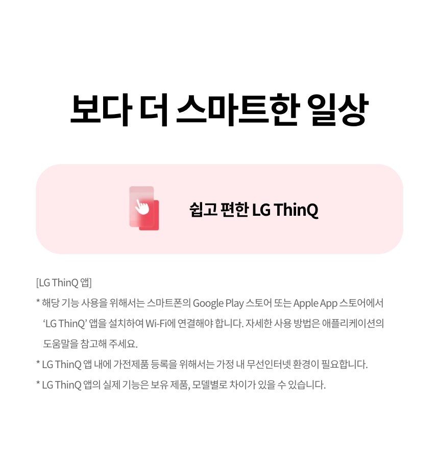 제품 이미지 및 특장점 등에는 광고적 표현이 포함되어 실제 제품과 차이가 있을 수 있으며 제품 외관, 에너지 효율 등급, 스펙 등은 제품 개량을 위해 사전 예고없이 변경 될 수 있습니다.