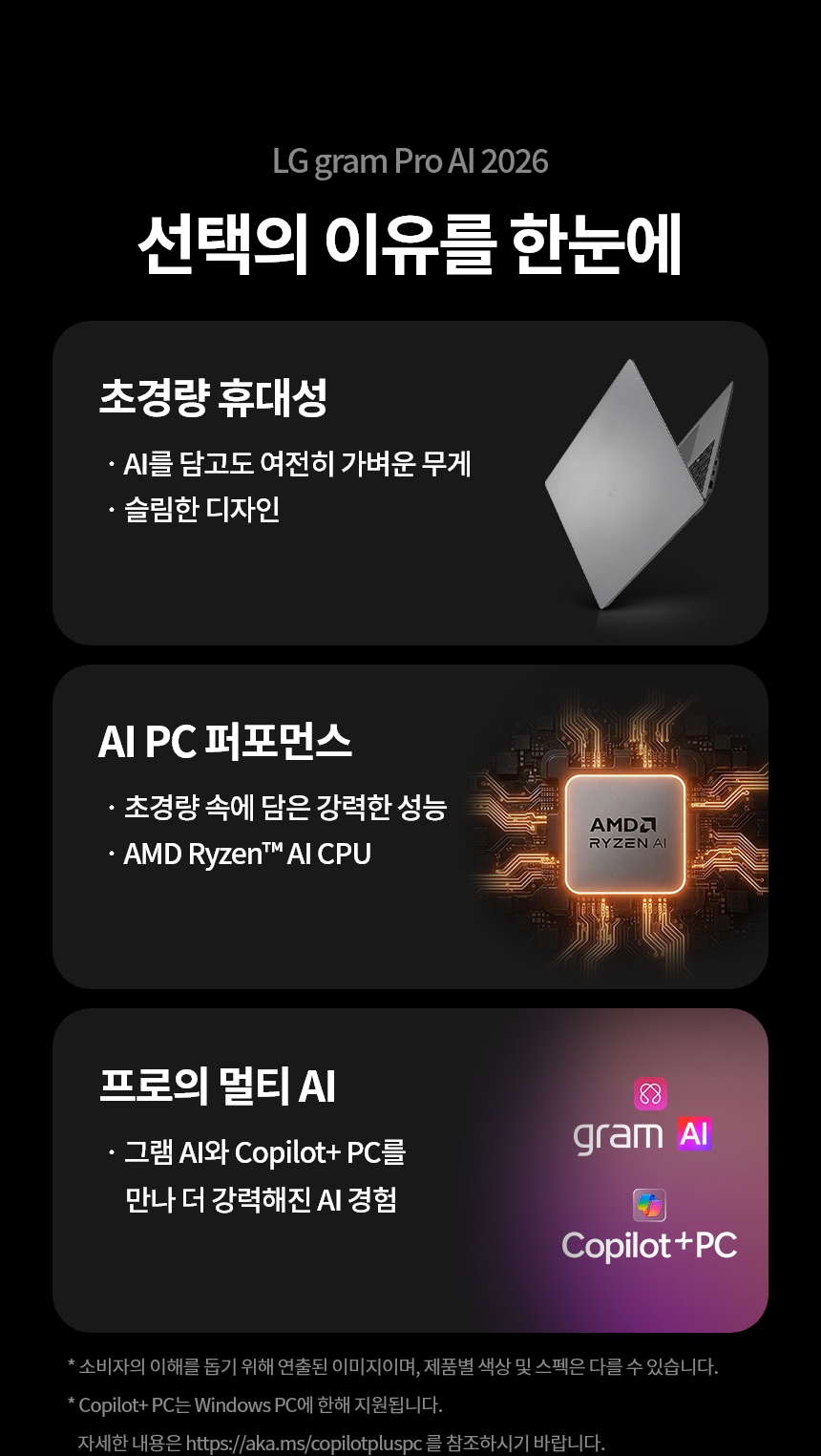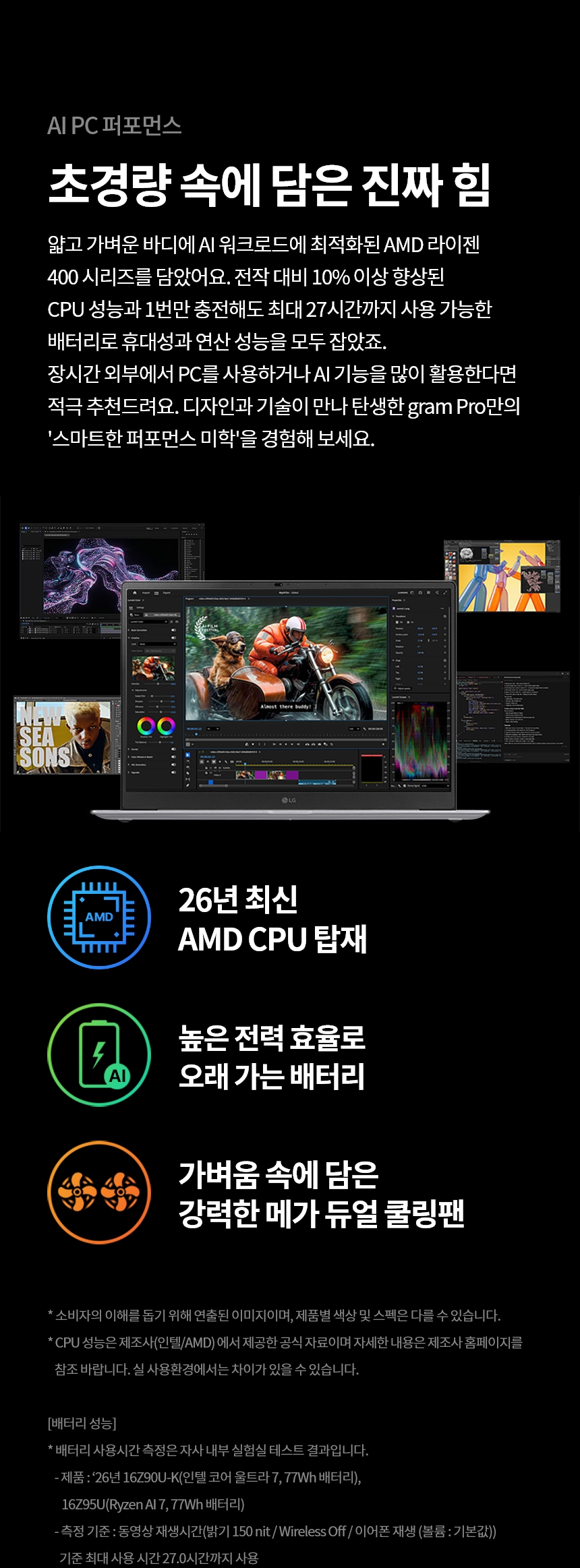 [신모델] LG그램 26년형 40.6cm(16인치) 프로 에어로미늄 실버  AMD Ryzen5 16 / 512G 16Z95U-G.AS50K
