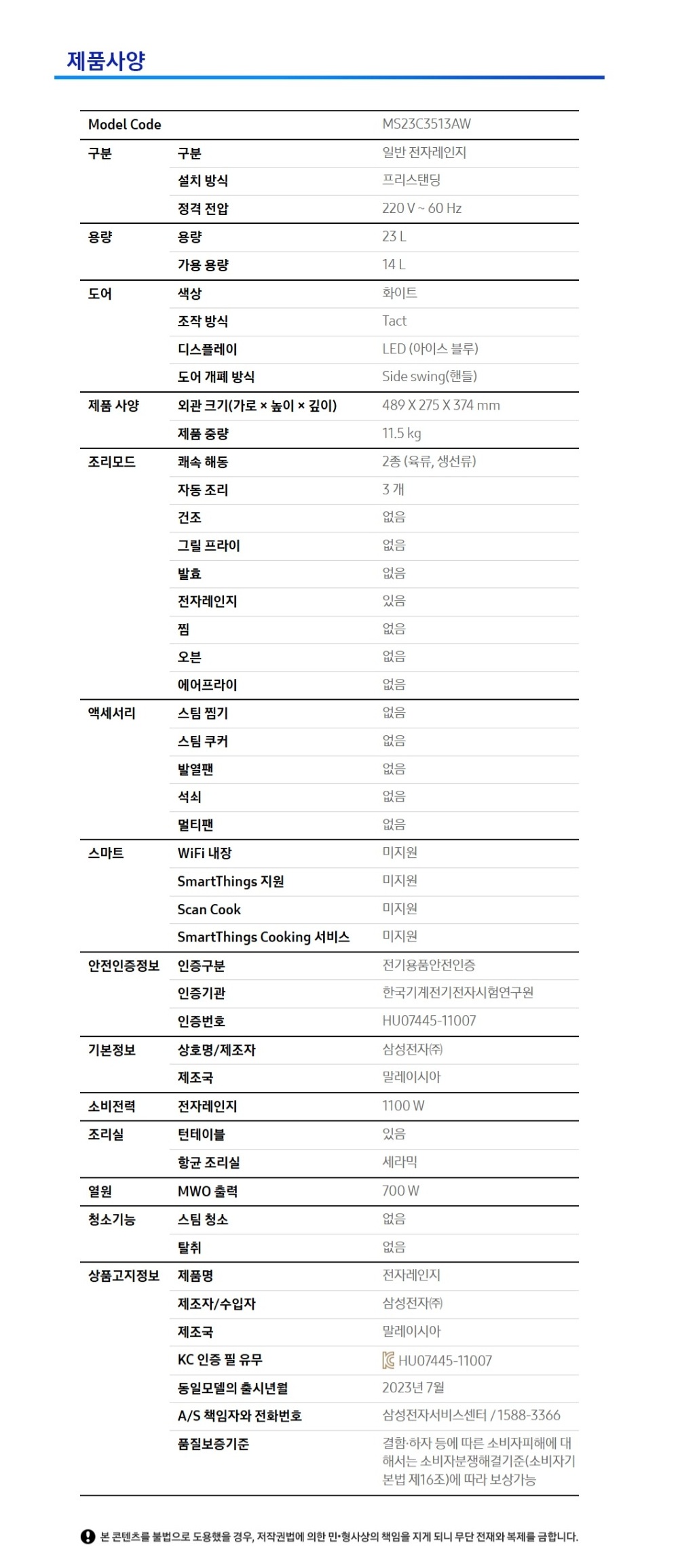홈 냉장고/주방가전 전자레인지/오븐 전자레인지 리뷰 건 [삼성전자/MS23C3513AW] 세라믹 전자레인지 23L 상품번호 S6295333 5,600원 삼성카드 5,600원 신한카드 5,000원 하나카드 1 / 5 할인가 140,000원 160,000원 최대혜택가 18% 131,600원 혜택 모두보기 적립 최대 e.POINT 적립 2,800P 자세히보기 배송비 무료배송 오후 2시 이전 주문건까지 당일출고 예정 도움말 당일출고 안내 상품에 따라 출고 예정일이 상이 할 수 있습니다. 카드혜택 카드사별 무이자 혜택 > 팝업 닫기 재입고 알림을 신청 하시겠어요? 취소 재입고 알림 받기 팝업 닫기 재입고 알림이 신청 되었습니다. * 30일 후 자동 해제 * 마이랜드 재입고 알림 내역에서 확인 가능 확인 팝업 닫기 재입고 알림을 해제 하시겠어요? * 미입고시 2025-06-20 자동 해제 취소 지금 해제하기 팝업 닫기 재입고 알림이 해제 되었습니다. 확인 쿠폰받기 팝업 닫기 다운로드 받은 쿠폰은 마이랜드>쿠폰에서 확인가능합니다. 최소구매금액과 할인액을 확인하세요. 일부 쿠폰은 조기소진 될 수 있습니다. 쿠폰별 발급수량은 ID당 1개입니다. APP에서 구매하면 1% 추가 적립 보험상품 옵션추가 선택안함 전자랜드 생활파워케어 도움말 가전제품 고장 걱정 없이 사용하세요! 창닫기 A/S연장 서비스(보증기간 연장 서비스)란,제조사의 A/S책임기간을 연장해주는 보험입니다. 선택한 플랜에 따라 최대 5년까지 무상보증 혜택을 받을 수 있습니다. 보상한도와 보험료는 플랜에 따라 상이하며 가전제품 파손은 보장하지 않습니다. 자세히 알아보기 * 본 보험상품은 계약일(배송완료일) 14일 이후에는 해지가 불가합니다. 창닫기 가전제품 고장 걱정 없이 사용하세요! 8,000원을 결재 하시면 무상보증 경과 후 고장 걱정없이 최대 5년 A/S연장 서비스로 수리비 보장 받으실 수 있습니다. 전자랜드 생활파워케어 보험을 함께 진행 하시겠습니까? 보험 추가결제 상품만 결제 8,000원 무상보증 경과 후 고장 걱정없이 A/S연장서비스로 수리비 보장 받으세요! 본품 : 수량 감소 수량 증가 140,000원 총 상품금액 140,000원 생활파워케어 포함가 생활파손케어 포함가 구매하기 장바구니 할인 · 혜택 모두보기 팝업 닫기 정상가 160,000원 즉시할인 20,000원 할인가 140,000원 e.POINT 최대적립 i 창닫기 최대 적립 포인트는 할인가 기준으로 계산되며, 최종결제금액과 결제 조건에 따라 적립금액이 변경됩니다. 주문서에서 최종 적립혜택을 다시 한번 확인해주세요. 2,800P 기본적립 1,400P 앱 구매시 추가적립 추천 1,400P 카드혜택 삼성카드 캐시백(일반결제) 5,600원 신한카드 캐시백(일반결제) 5,600원 하나카드 즉시할인(일반결제) 5,000원 ※ 캐시백은 배송완료 기준 익익월 10일 이내 카드대금 결제통장으로 카드사에서 입금됩니다. 최대 혜택가 131,600원 삼성카드 캐시백 유의사항 삼성카드로 결제 시 4% 캐시백(최대 10만원 한도)최소 주문 금액 5만원 / 미충족시 캐시백 지급 불가 * 상품 상세페이지에서 혜택대상으로 표기된 일부 상품에만 혜택적용* 삼성카드 즉시할인 행사와 중복적용 가능* 체크카드, 법인카드, 기업카드(사업자 포함), 기프트카드(충전포함), 하이브리드 카드, bc카드로 결제 시 적용 제외* 스마일페이, Npay, 카카오페이, SSGPAY, 페이코, L.페이, 삼성페이, 토스, 차이페이, 무통장입금으로 결제 시 적용 제외* 최종카드결제금액 기준으로 캐시백 혜택이 적용(쿠폰, 포인트, e.POINT, OK캐시백 등을 차감한 금액)* 캐시백은 인도완료 기준으로 익익월 10일 내 지급 (캐시백 지급전 카드승인 취소, 카드사 탈회 시 지급되지 않음)* 기업회원, 비회원 주문건은 캐시백 대상에서 제외* 캐시백 행사는 당사 사정에 의하여 예고 없이 조기 종료될 수 있습니다. 신한카드 캐시백 유의사항 신한카드로 결제 시 4% 캐시백(최대 10만원 한도)최소 주문 금액 5만원 / 미충족시 캐시백 지급 불가 * 상품 상세페이지에서 혜택대상으로 표기된 일부 상품에만 혜택적용* 신한카드 즉시할인 행사와 중복적용 가능* 체크카드, 법인카드, 기업카드(사업자 포함), 기프트카드(충전포함), 하이브리드 카드, bc카드로 결제 시 적용 제외* 스마일페이, Npay, 카카오페이, SSGPAY, 페이코, L.페이, 삼성페이, 토스, 차이페이, 무통장입금으로 결제 시 적용 제외* 최종카드결제금액 기준으로 캐시백 혜택이 적용(쿠폰, 포인트, e.POINT, OK캐시백 등을 차감한 금액)* 캐시백은 인도완료 기준으로 익익월 10일 내 지급 (캐시백 지급전 카드승인 취소, 카드사 탈회 시 지급되지 않음)* 기업회원, 비회원 주문건은 캐시백 대상에서 제외* 캐시백 행사는 당사 사정에 의하여 예고 없이 조기 종료될 수 있습니다. 하나카드 즉시할인 유의사항 하나앱카드로 10만원 이상 결제 시 금액대별 즉시할인* 10만원 이상 결제 시 5천원 / 30만원 이상 1.5만원 / 50만원 이상 2.5만원 / 70만원 이상 3.5만원 / 100만원 이상 5만원 / 150만원이상 7.5만원 / 200만원 이상 10만원/ 250만원 이상 12.5만원 즉시할인* 적용제외대상: 법인/선불/기프트/하나BC 등 일부카드 및 간편결제수단, 전자랜드페이 결제건 제외* 비회원/기업회원 결제건 제외* 최종 카드결제금액 기준으로 혜택이 적용* 예산 소진 시 별도 공지없이 종료될 수 있음*
