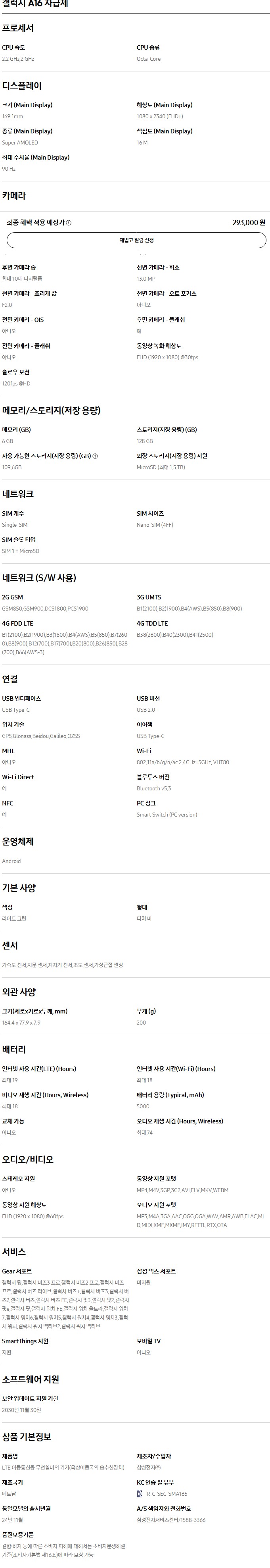 [자급제] 갤럭시 A16 128GB 라이트 그린