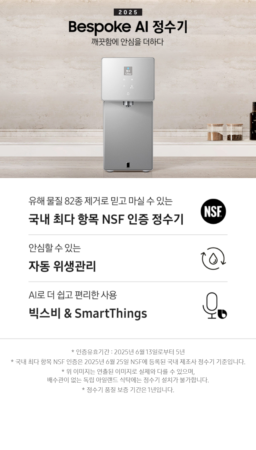 [삼성전자/RWP70F15ANW] Bespoke AI 정수기 (냉/온/정수) 사틴 그레이지