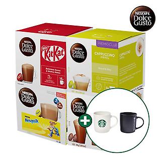 [돌체구스토] 16입 커피캡슐 3박스 (킷캣,네스퀵,초코치노,카푸치노) 4종 택1 + 스타벅스 머그컵 랜덤증정