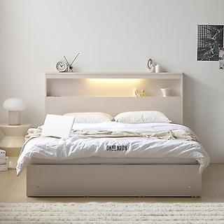 아이앤 세피아 LED 수납헤드 1단 침대 프레임 퀸 WF