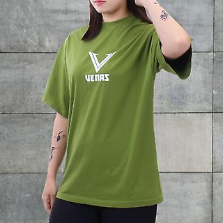 베나스 프론트 포인트 반팔 티셔츠 카키 S 루즈핏
