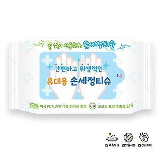 유진크린텍 물없이사용 휴대용 손세정티슈 20매 200개
