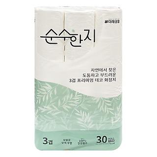 순수한지 3겹 30롤 프리미엄 데코 화장지 1개
