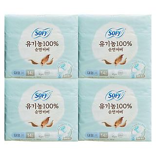 쏘피 유기 농 순면커버 생리대 대형 날개 14입X4개