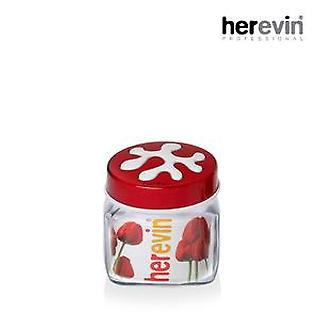 [헤르빈] 퍼즐 정사각 유리 밀폐용기 1L (레드)