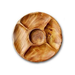나무 원형 나눔접시 홀5절 접시 안주 찬기