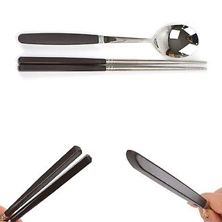 고급형 유광 진공 수저 숟가락 젓가락 4호 1세트 사각