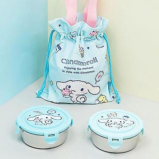 JW 시나모롤 원형스텐 2단 도시락 조리개세트