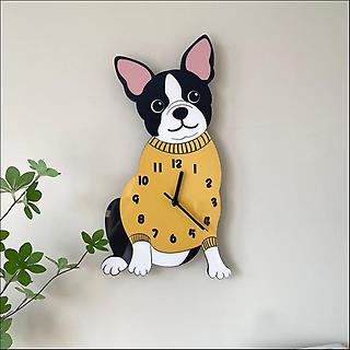 (주문제작) 홈테리어 프렌치불독 강아지 디자인 캐릭터 무소음 벽시계