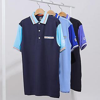 전시상품/풋조이 컬러 블록 카라 반팔 티셔츠