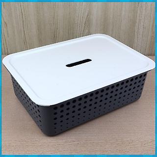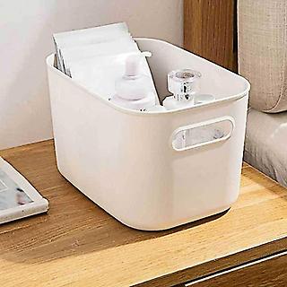 수납바구니 손잡이 플라스틱 덮개 바스켓 중형화이트