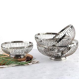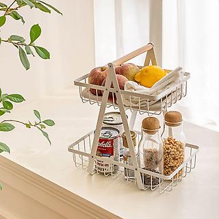 2단 과일 디저트 바스켓 트레이 철제 우드핸들 바구니