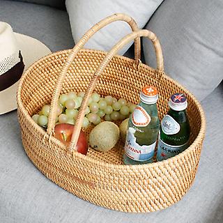 오픈 라탄바구니 2p 피크닉 핸들바구니 수납 정리함