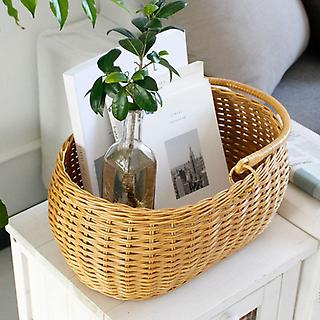 손잡이 라탄바구니 다용도 바스켓 정리박스 소품 정리