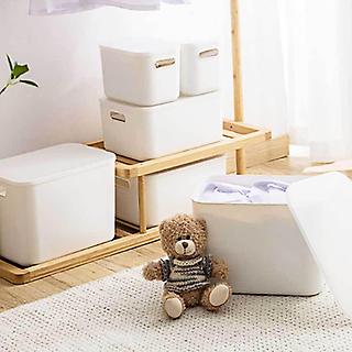 뚜껑 화이트 바구니 포함 중형 정리함
