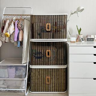 올지 슬라이딩 리빙박스 2개 세트 66리터 투명 플라스틱 옷 장난감 수납함 펜트리 정리함 대형