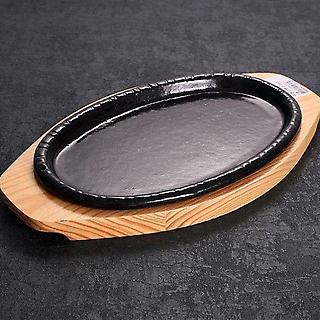 보온성 좋은 스테이크 원형줄함박 철판+목판받침 3호