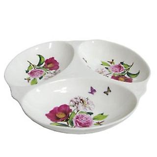 까멜리아 로우커 도자기 3구 나눔접시 25cm 안주 반찬