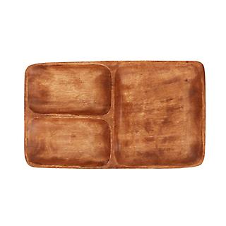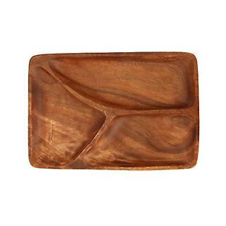 아카시아 원목 직사각 3절 접시 1P 우드 나무 그릇