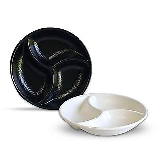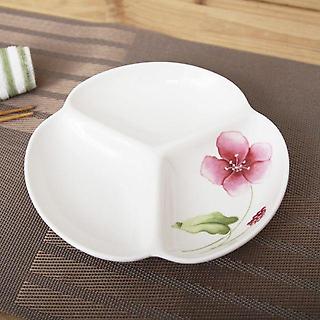 멜라민 3칸 나눔 간식 접시 반찬그릇 22.4cm 9호 크림