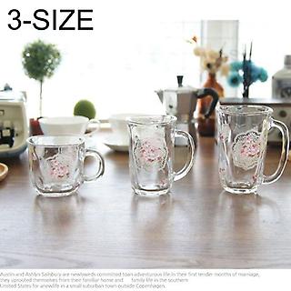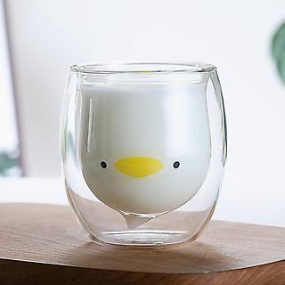 (로하티) 행복카페 이중 유리컵 깜찍오리 내열 동물컵