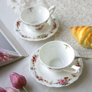 본차이나 도자기 커피잔 2인 1세트 로즈