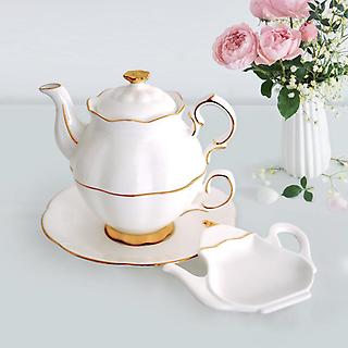 티백트레이+고원 엘린 티포원 300ml 1인용 티팟세트 도자기 티포트 찻잔