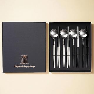 보겐 에펠 커트러리 수저세트 8P 샤틴(블랙,화이트) 4인 선물세트