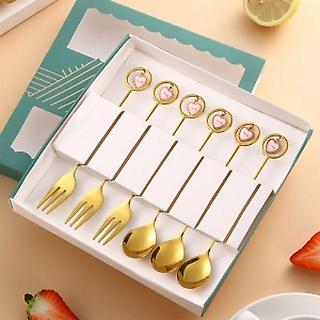 댕글 하트 티스푼 티포크 세트 6P 스텐 과일포크 골드